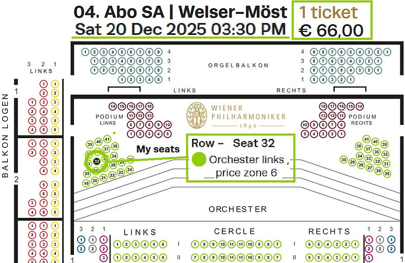 ★ ウィーンフィル定期演奏会は、年間定期会員が不都合で、チケットを返却し、再販し、空席を造らない文化! で、今回も6日前の発売時刻に、ウィーンフィルHPで購入を試みたが、[SOLD OUT]だった。通例では空席があり、買えるのに・・・。で、思ったのは、クリスマス直前の土曜日であり、本人が不都合でも、家族・知人が譲り受けてのコト!